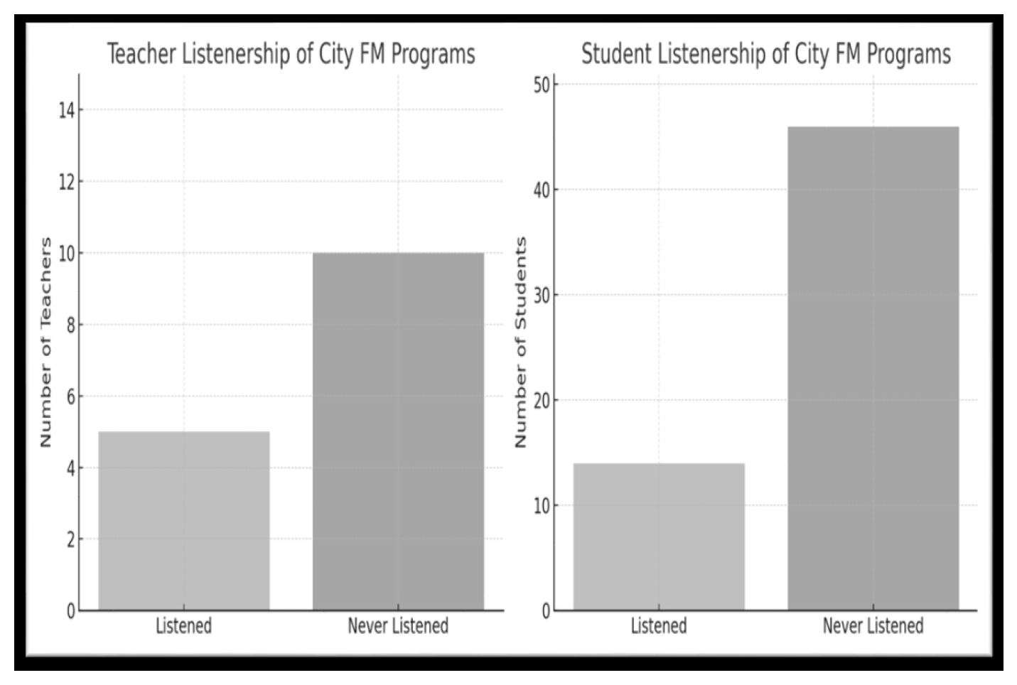 The data reflect a pattern in which City FM’s educational programs reach students to a moderate extent but fail to leave a strong or lasting impression for most of them. While half of the students recognized the existence of educational content, very few were able to recall specific topics, pointing to a gap between exposure and retention. This implies that although the station includes educational material within its programming, improvements are needed in the depth, clarity, and presentation of this content in order to make it more engaging, memorable, and meaningful for young listeners. Strengthening these aspects could enhance students’ understanding of school-related issues and potentially increase the educational impact of the programs.